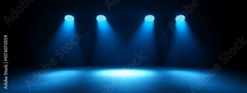 Blue Stage Lights Shining In Darkened Environment.