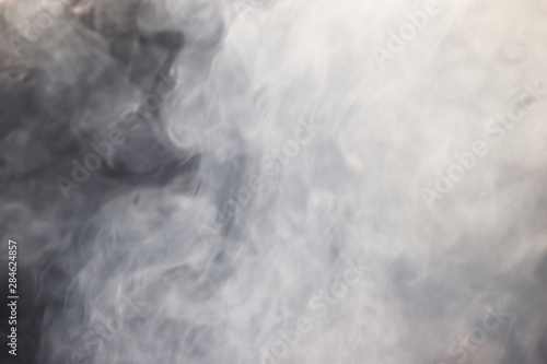 Blurry white mist or smoke or steam on black background, Pollution and burning