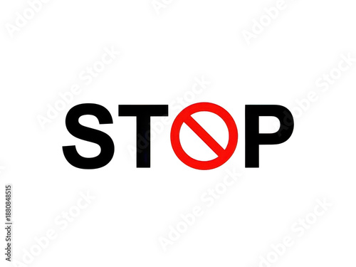 Bold Black "STOP" Text with Red Forbidden Circle Symbol Replacing the Letter O, Signifying Prohibition or Warning.