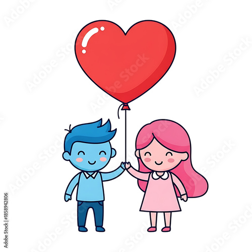 Boy and girl holding a heartshaped balloon together isolated on transparent background