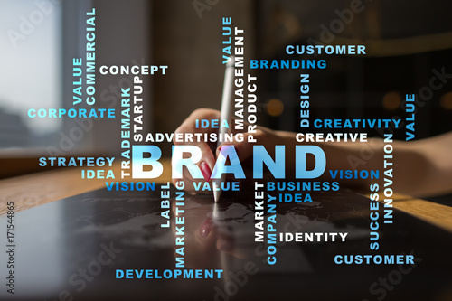 Brand concept on the virtual screen. Business concept. Words cloud.