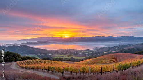 Breathtaking sunset over vineyards experience nature's beauty in a scenic landscape