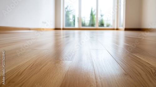 Bright and Airy Room With Wooden Flooring and Sunlit Window View : Generative AI