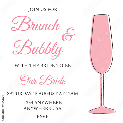 Brunch and bubbly. Bridal shower invitation with pink glass of champagne