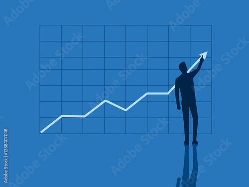 Build a business, profit, income grows. Businessman draws a graph to grow