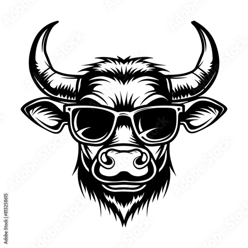 bull sunglasses engraving black and white outline