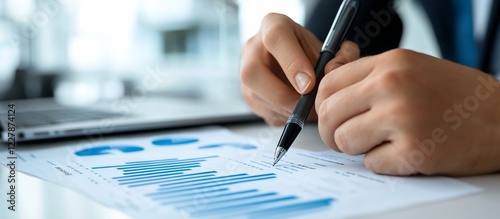 Business Analyst Reviewing Financial Data Charts and Graphs