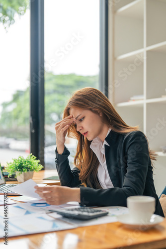 Business asian women are stress while working on laptop, Tired business woman with headache at office, feeling sick at work