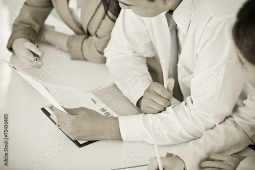Business people discussing the charts and graphs showing the res