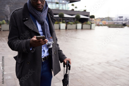 Businessman looking at mobile phone, partial view