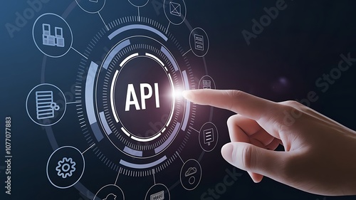 businessman pressing virtual button API, application programming interface. cloud computing concept, cloud technology, Saas, Paas, Iaas. AWS Services