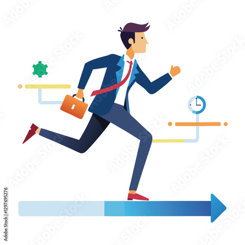 businessman running on project timeline project on white background