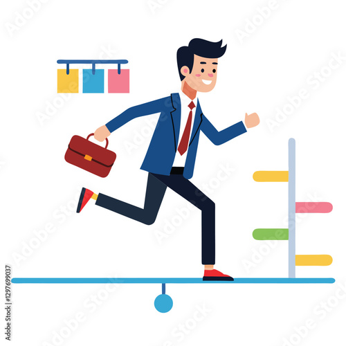 businessman running on project timeline project on white background
