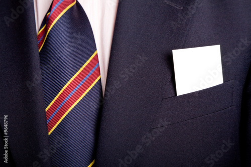 businessman with a blank business card in his pocket