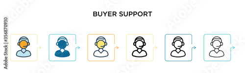Buyer support vector icon in 6 different modern styles. Black, two colored buyer support icons designed in filled, outline, line and stroke style. Vector illustration can be used for web, mobile, ui