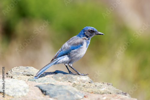 California Scrub-Jay (Aphelocoma californica) Adult perched on a rock. Big Sur, Monterey County, California, USA.