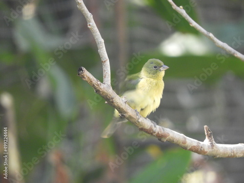 Canario mariposa hembra (Passerina ciris) posada en un árbol.