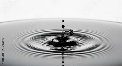 Captivating black ink drop creates mesmerizing ripples on a pristine water surface, a stunning moment of fluid dynamics frozen in time.