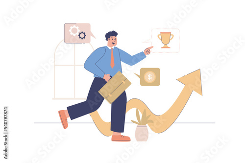 Career opportunities web concept with people scene. Businessman pointing forward looking for new startups for investment and development. Character situation in flat design. Vector illustration.
