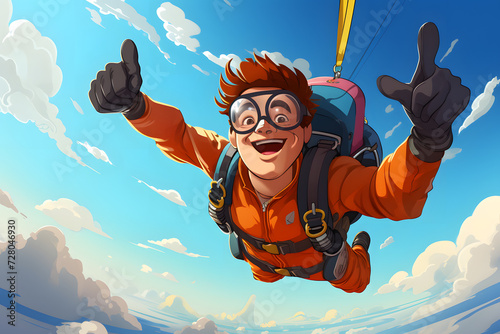 Cartoon Character skydiving, skydiving cartoon, character, cartoon dude, illustrated cartoon, skydiving