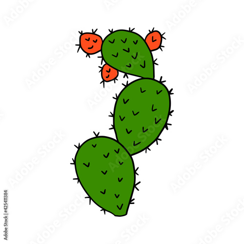 Cartoon doodle cactus isolated on white background. Cute cartoon floral element.