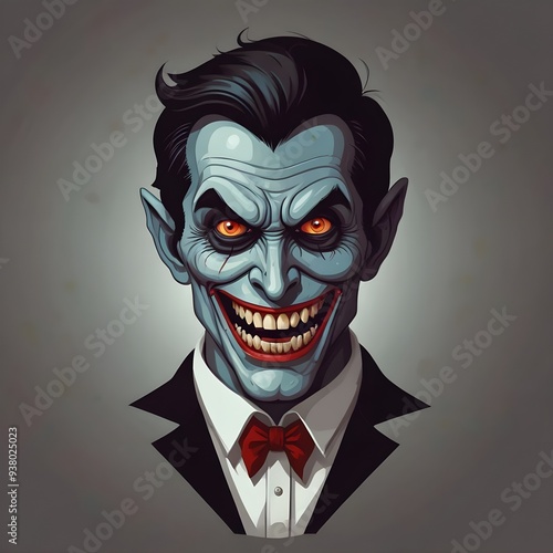Cartoon horror man vampire character face smile. Illustration. Generative AI
