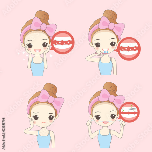 cartoon woman with dental care
