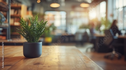 Casual business office with blurred people and modern desks