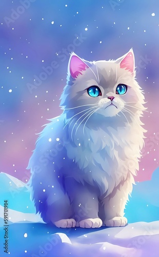 cat cute and adorable in front of a cityscape colorful background. Created with Generative AI Technology