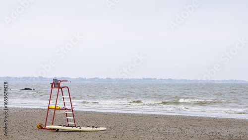 chaise surélevée sur une plage pour les surveillants sauveteurs de baignade. Baignade surveillée au bord de la mer