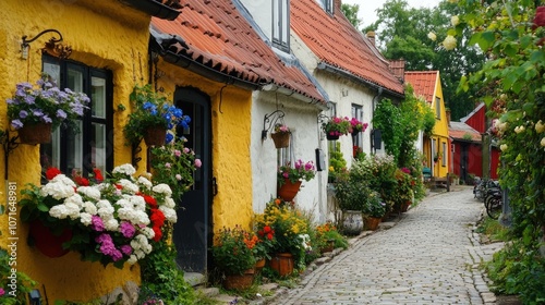 Charming Cobblestone Street with Colorful Houses