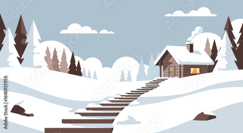 Charming Winter Cabin Retreat Nestled In Snowy Landscape Scenery Serenity