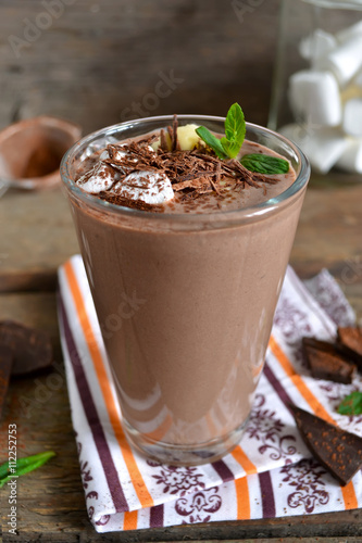 Chocolate smoothie with banana, oatmeal, almonds and marshmallow