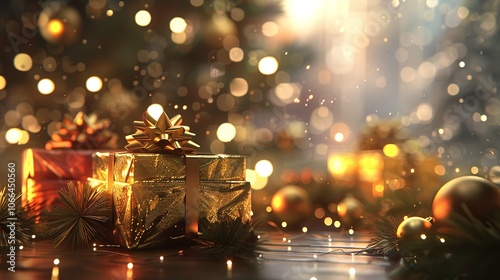 Christmas Gift Boxes and Bokeh Lights 3D Illustration 8K