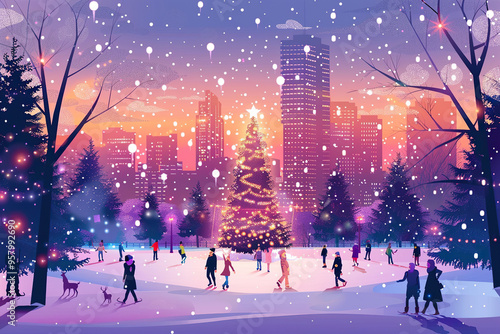 Christmas greeting card with bright winter holiday composition and New Year background