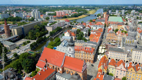 city architecture europe drone flyover old town Opole Poland