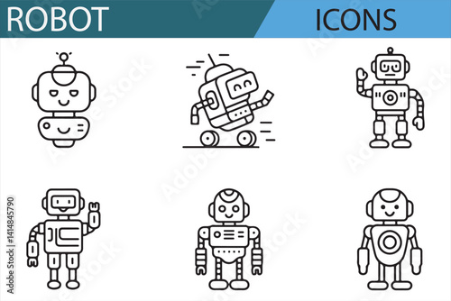 Clean and Simple Robot Icons for Digital Platforms and Robotic Systems