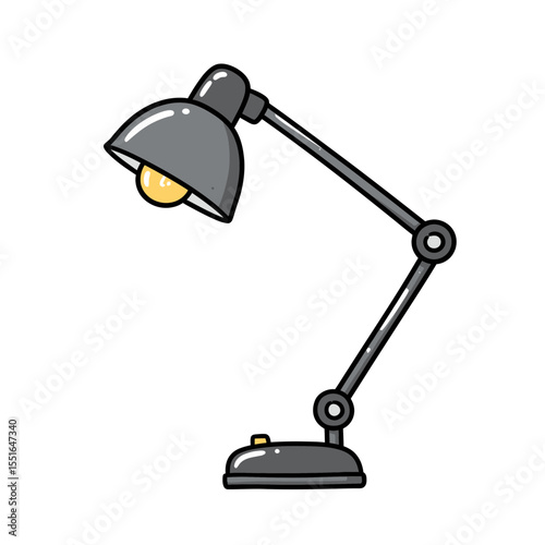 Clean Digital Illustration of an Adjustable Grey Desk Lamp Emitting Soft Warm Light Perfect for Enhancing Focus During Late Night Study Sessions or Office Work Tasks