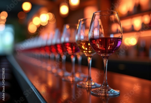 close elegant wine glasses vibrant bokeh colorful light reflections captured stunning visual array, alcohol, barware, beverage, bright, celebration
