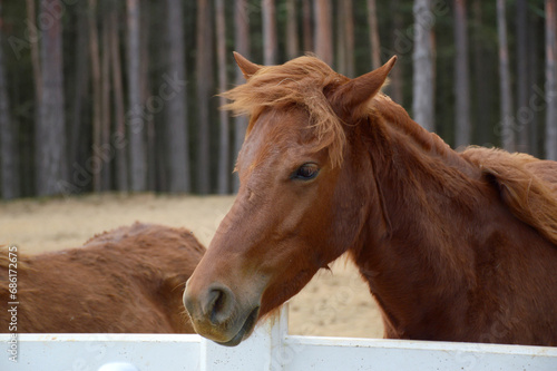 close up horses in the paddock