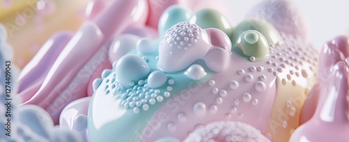 Close up of 3d fluid shapes in soft pastel colors with organic forms and matte plastic textures