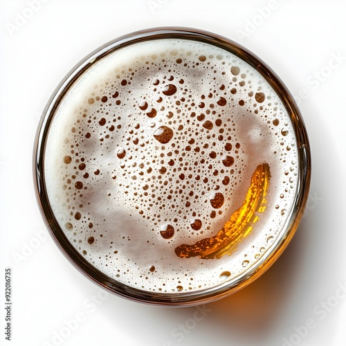 Close Up of Frothy Golden Beer Liquid in Transparent Glass with Foam Head