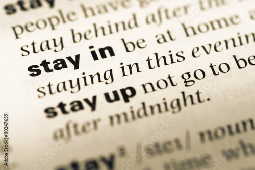 Close up of old English dictionary page with word stay in