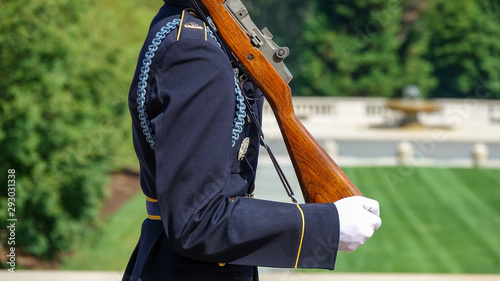 Close up view of a soldier during the Changing of Guard at Tomb of the Unknowns, Arlington National Cemetery, Washington DC, USA