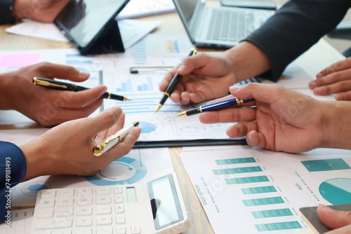 Close-Up Hand Business People Meeting Agenda at Desk, Stock Trends