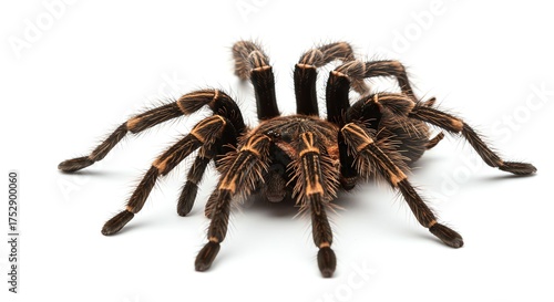 Close-up of a Brown Tarantula Spider with Detailed Hairy Body on White Background