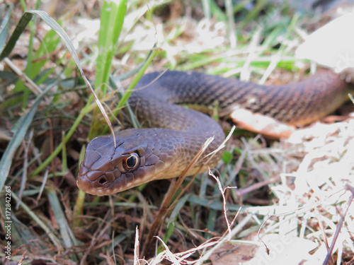 closeup of a head of a snake Malpolon monspessulanus