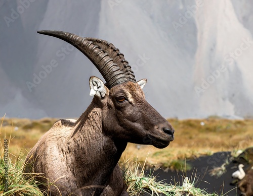 Close-up of a resting mountain goat