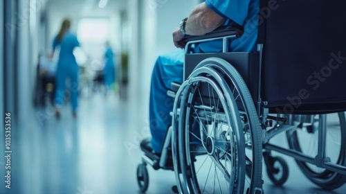 Close-up of a Wheelchair Wheel in a Hospital Hallway