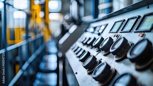 Close-up of an industrial control panel with knobs and meters, showcasing a detailed look into machinery operations.